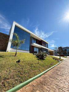 Casa de alto padrão localizada em terreno de esquina no condomínio Vivenda das Palmeiras, lote 124. Área construída de 303m² contando com 3 suítes com sacadas, pé direito duplo, home office, salão de festas e piscina. 2 vagas cobertas e 2 vagas descobertas.